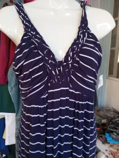 Maxi vestido color azul con blanco. Maxi vestido , tela muy suave , talla s, pero queda hasta un m , estira , viene amplio , nuevo sin etiqueta