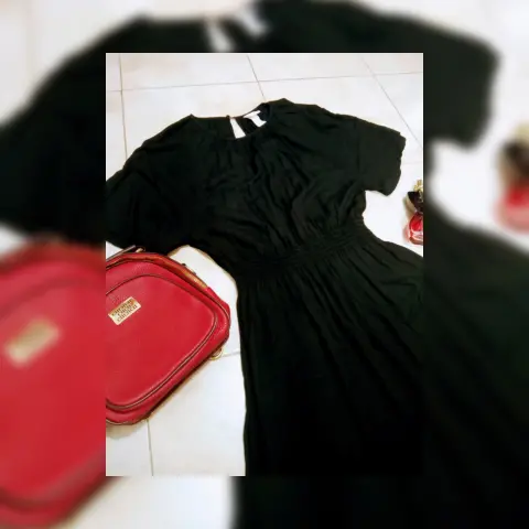 Maxi vestido negro de manga corta 😍 Viene con olanes y se ve increíble puesto con tenis 😁 Marca: H&MTalla: XS (Viene amplio, le queda hasta una M)Detalles: Ninguno