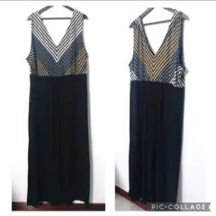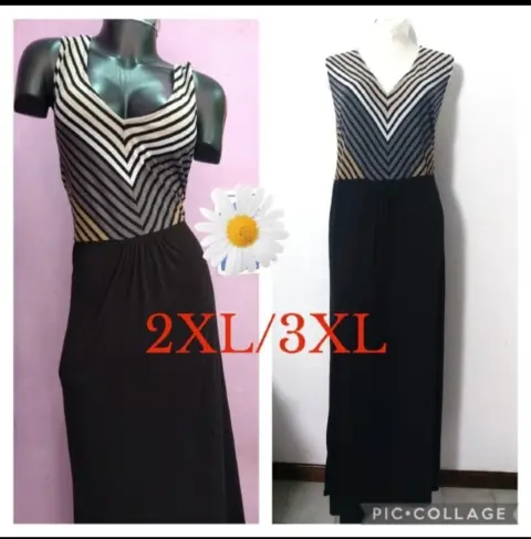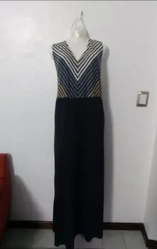 Maxi Vestido elegante escote V. En buen estado. Sin detalles!De axila a axila: 64 cmLargo: 150 cmCon strech. Tela rayón y poliéster.