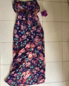 Bellísimo maxi vestido, como base morado y estampado de flores. Es de la marca Papaya, la tela es muy fresca, ideal para climas calurosos