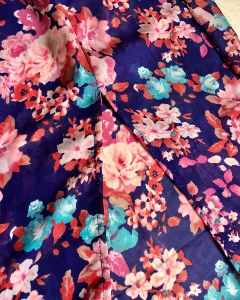 Maxi vestido floreado de Papaya. Bellísimo maxi vestido, como base morado y estampado de flores. Es de la marca Papaya, la tela es muy fresca, ideal para climas calurosos