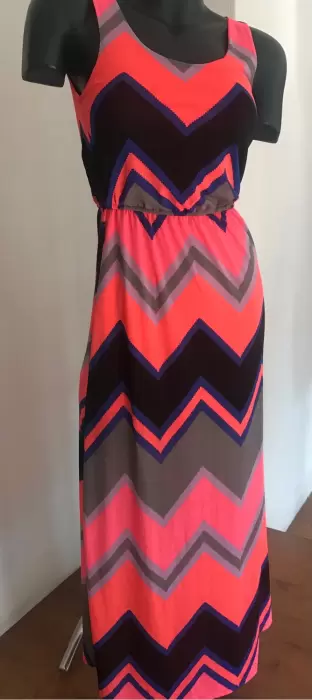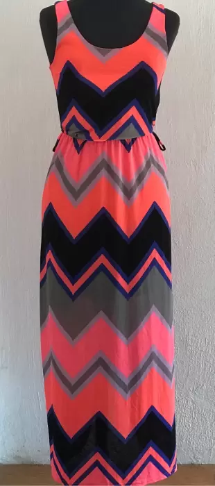 Maxi vestido líneas neón. Padrísimo maxi vestido con líneas en León y negro horma muy bonito es nuevo sólo le falta el cinto Única prenda que no te lo ganen ya lo subí rebajado por lo cual es precio fijo por la comisión de la