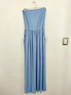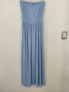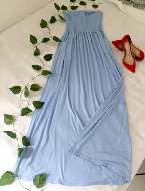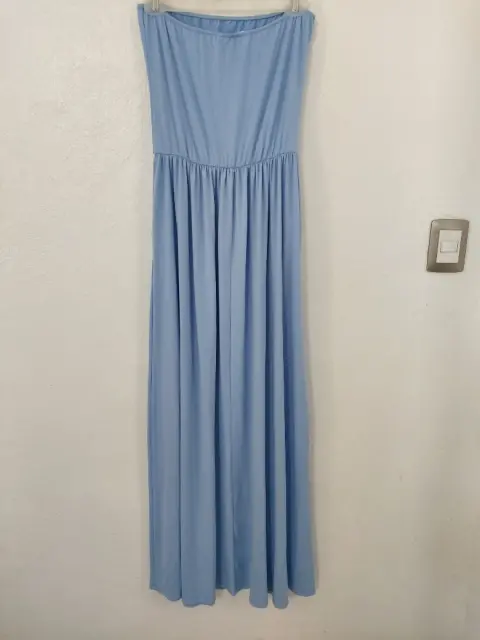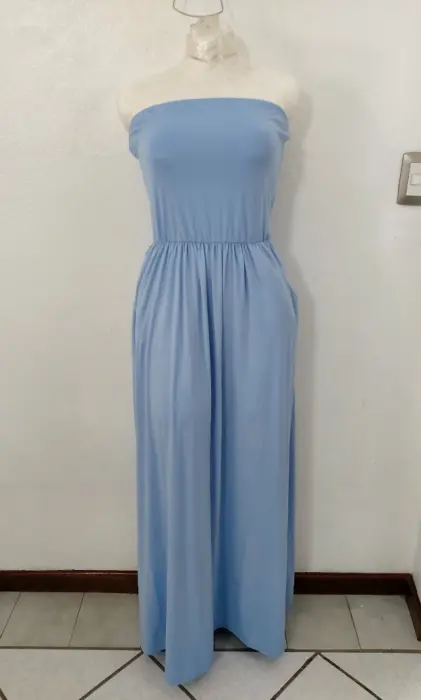 Maxi Vestido strapless con bolsas. Esta Divino!La textura de la tela se siente tipo piel de durazno.Tiene bolsasResorte en la parte de arriba, toda la tela tiene strech.Talla LHorma super bonito.Sin detalles y como Nuevo.1 puesta.