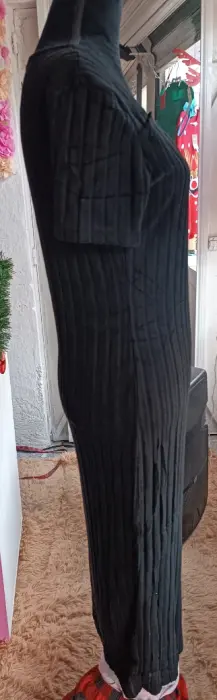 MAXIVESTIDO UNITALLA COLOR NEGRO. MAXIVESTIDO, UNITALLA (ESTIRA HASTA XL),COLOR NEGRO,SUAVECITO, TELA TIPO CANELE,MIDE DE HOMBRO A HOMBRO SIN ESTIRAR 41 CM, DE AXILA A AXILA 45 CM, DE LARGO 120 CM, ABERTURA 27 CM