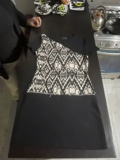 Bonito mini vestido negro en dos tonos negro con el talle estampado