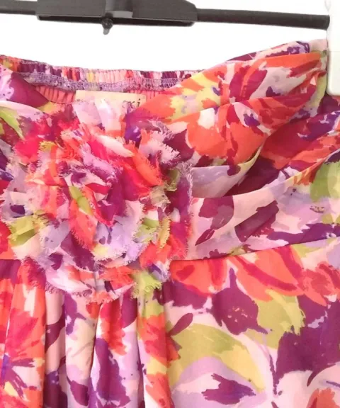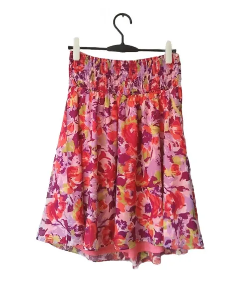 Mini Vestido Strapless floral Forever 21. Vestido de seda sintetica strapless corte imperio corto fluido de la marca Forever 21 talla M. El producto es usado en excelentes condiciones sin detalles. Proviene de un hogar libre de humo de tabaco y mascotas.MedidasSisa: 37 cms, estirado 43 cmsLargo: 66 cms100% poliéster