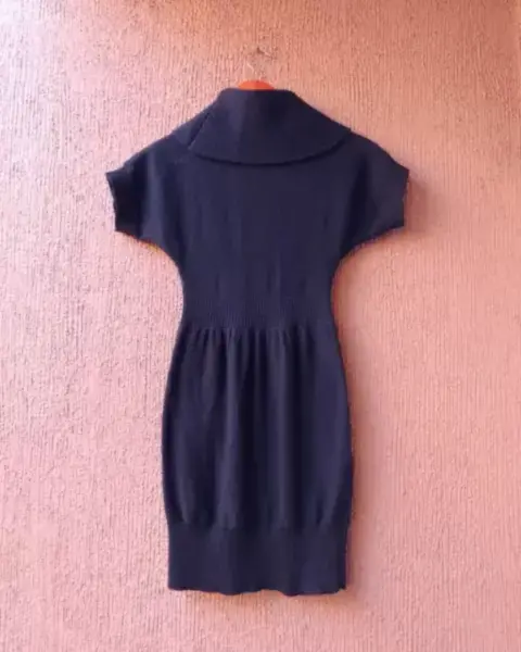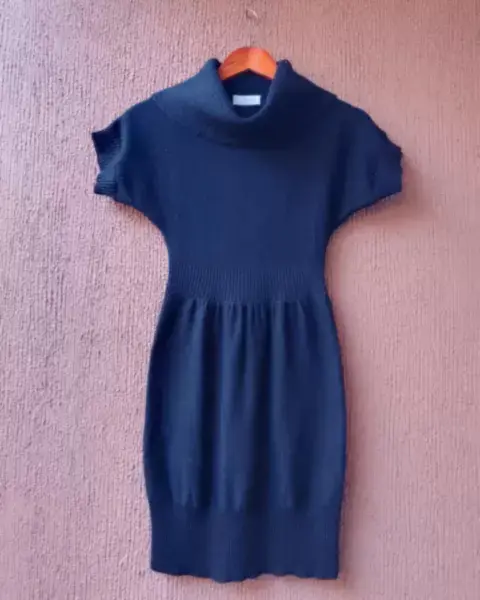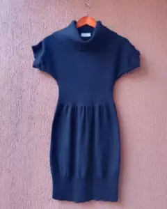 Lindo vestidito Loft de tejido de punto, cuello detortuga y manga corta, con un corte muy lindo encolor negro*Talla XCH pero estira y puede quedar hasta alguien M como blusón, de hecho yo así lo usaba con mallas*Medidas: Axilas 37cm. Cintura 35cm. Cadera 42cm. Largo 73cm*Detalles: Unos hilos jaladitos que no se notan a simple vista**Calificación: 9*