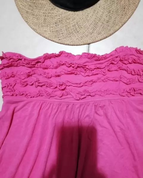 Es de algodón se ajusta en la espalda tiene pequeños olanes en el busto muy combinable con sandalias tenis alpargatas botines tu elige