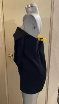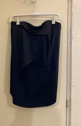 Minivestido talla 4, negro, tela satinada, tiene carillas para dar forma