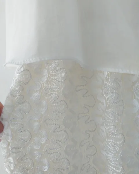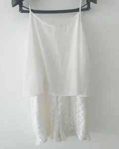 Mono con encaje, tipo short y blusita, fondo en la parte de adentro.Súper cómodo y fresco.
