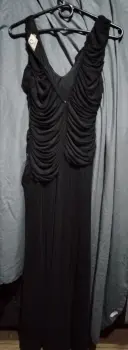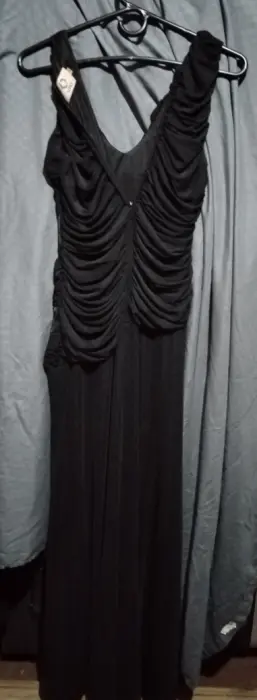 Muy lindo vestido negro de fiesta. Vestido Largo de fiesta. Con aplicación de una flor tipo cristal a la cadera