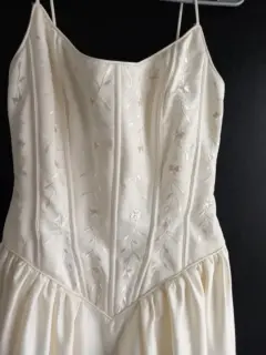 Novia o XV años, hermoso vestido color Ivory. Talla Mediana incluye cintas y pashmina del mismo tono (tul transparente) tela Satinada con bordado en la parte superior.Uso unica vez.