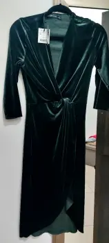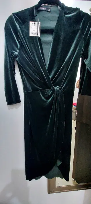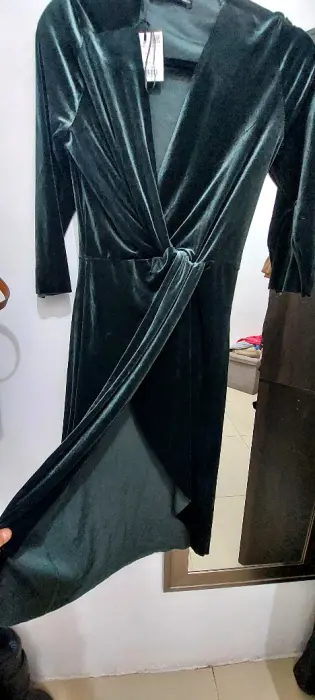 Nuevecito vestido marca Zara talla S color verde oscuro manga 3/4 super sexy con abertura.en entrepierna muy elegante y sensualidad, se ajusta al cuerpo, tela satin brillosita y con cuello en v