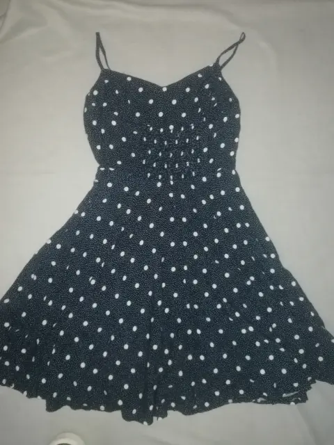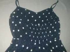 Hermoso y fresco vertido de tirantes color azul marino con bolitas color blanco marca old navy con cierre en costado y resorte ajustable en la parte trasera parte inferior con vuelo,en todos los precios de mi clouser me puedes ofertar, si te agrada algo más lo ajusto a un solo pedido.