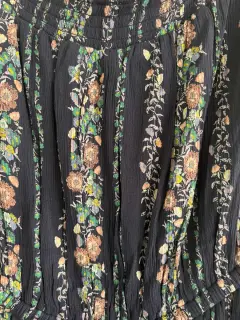Talla Mediana, largo Midi, hombros descubiertosTiene forro. Sin usar, sin etiquetaMedidas: axila a axila 52 cm, cintura tiene resorte estira hasta 62 cm.