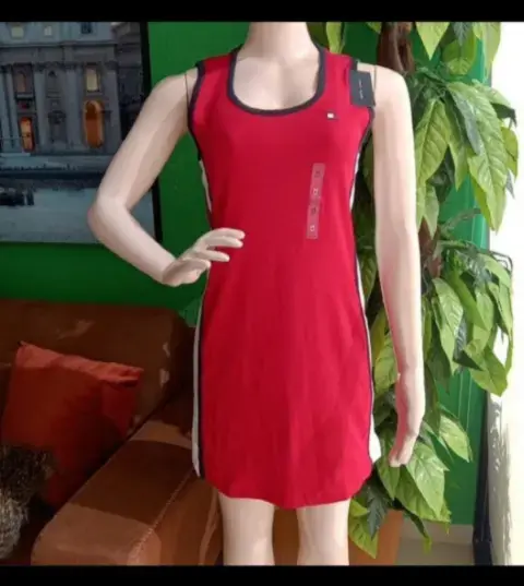 Padrísimo vestido. Tommy Hilfiger. Vestido color rojo con franjas blancas y azul marino a los costados. Escote cuadrado. Logo de la marca bordado en el pecho.Talla MMaterial:👉100% algodónMarcas originales importadas de USA.