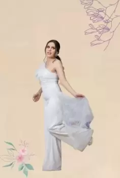 Palazzo en color blanco con solapa y manga de olan en tul, el pantalón es muy cómodo porque la tela es como licra y la campana te hace lucir más estilizada.Ideal para cualquier ceremonia como bautizo, boda civil, primera comunión, o para la ocasión que tu prefieras💗