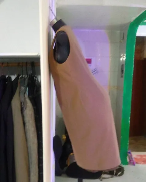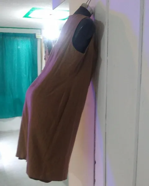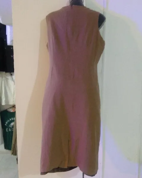 Pierre Christine vestido cafe sin mangas, talla 14, cuello redondo, el forro cafe se sale un poco por la parte inferior como se nota en fotos.