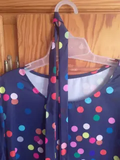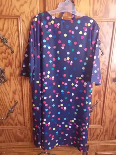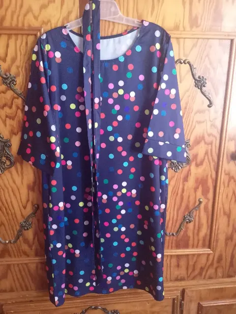Puntos y más puntos. Vestido fresco, azul marino con puntos de colores, marca shein , talla grande, incluye cinta, nuevo y barato
