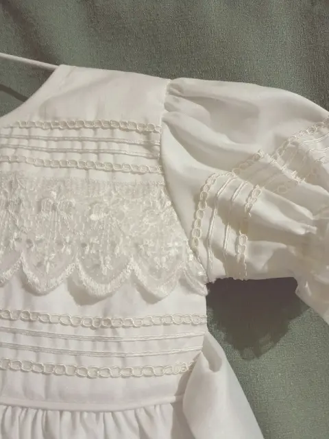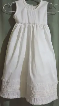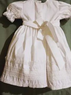 Reponer bautizo y presentación (2 en 1). 2 piezas completo sin desmontar 75 cm; vestido 50 cms seda color beige. Ambas piezas incluyen crinolina. Finos acabados con encaje y muy amplio da talla 4.