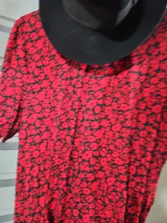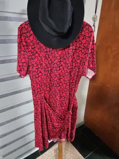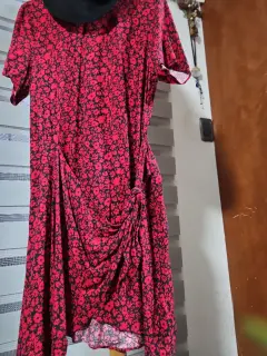 Rojas son las flores. Vestido, cómodo, tela apreciable. Manga corta, cuello redondo, detalle botón por detrás. Combinable con leggins o solo.