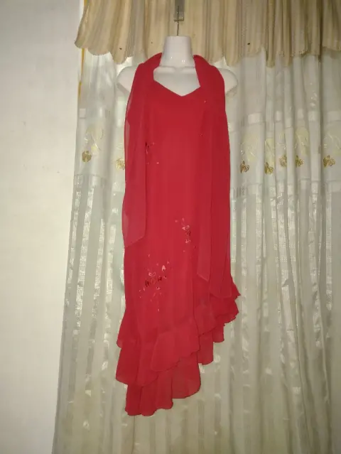Hermoso vestido rojo de tirantes con su respectiva chalina, súper sexy vistoso y elegante ya que el rojo nunca pierde su glamour.. la tela tiene una caída muy bonita y la elegancia la portas tu...