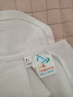 Hermoso ropón de Bautizo, para niña, color Ivory, talla 12 meses, marca Campanita en perfecto estado, incluye gorrito y cinto