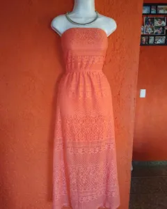 ❤️Vestido de encaje color naranja con un fondo pequeño y lo largo dl vestido es en transparencia porque es encage, es straple y tiene resorte en la cintura para hacerteuna hermosa fogura❤️Medidas aproximadas largo de cintura hacia abajo 105cm, largo del hombro a la cintura 26cm, cintura 74cm y se espande un poco mas con rl resorte, cadera 100, pecho 76cm❤️SI TE GUSTA OFERTA ❤️❤️❤️