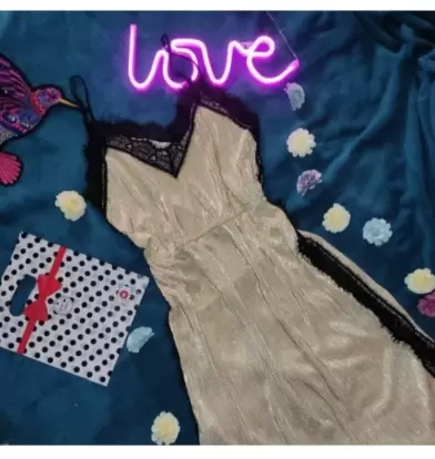 Sexy Vestido dorado con negro. Hermoso vestido dorado con negro de tirantes,resorte en cintura, tela fresca, largo hasta abajo de la rodilla, queda a talla chica o mediana, 100 por ciento Poliester.Envío de lunes a sábado.
