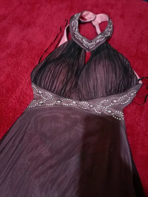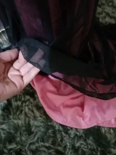 Este precioso lo usé solo una vez en año nuevo, lindísimo tiene forro rosa y una capa de tela delgada negra encima le da un efecto precioso. Es muy cómodo, suelto fresco, y sexy. Es largo! De noche. 💕✨