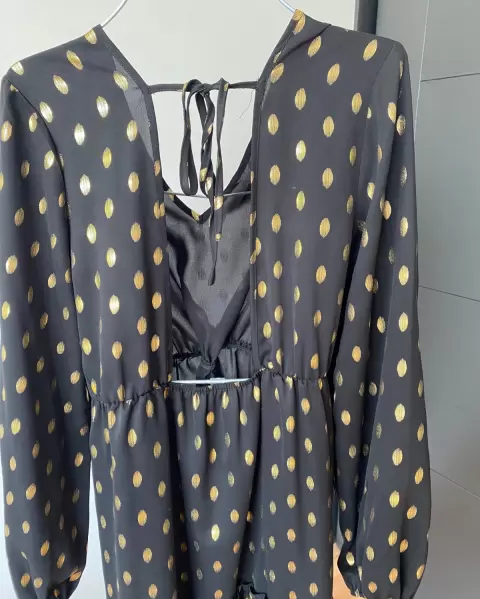SHEIN vestido. Vestido corto SHEIN negro con detalles dorados, escote sexy en la espalda