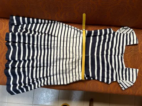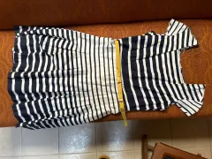 Vbestido casual. Marca Toscano, vestido entallado en la parte superior, la parte inferior es tableada, cierre en la espalda.tiene un cinturón amarillo angosto original