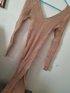 Vestdo ajustado beige. Sexi y atractivo vestido largo con apertura en pierna alta, escote en V, profundo y espalda tambie, en tejido ajustable para un entallado ideal