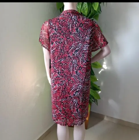 Elegante vestido azul marino con kimono en colores azul, lila y blanco.Puedes utilizar solo en vestido o colocar el kimono. Accesorio incluído que se puede retirar.Talla M, queda a L también.