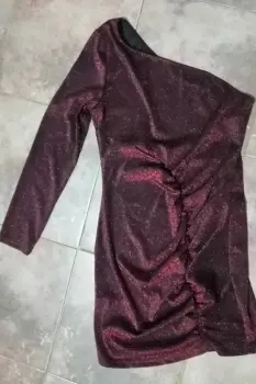 Vestido color rojo, odeql para evento de noche, corto, se amolda al cuerpo, con una manga