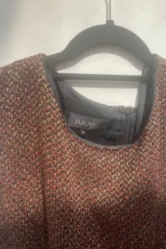 Vestido. Vestido a la rodilla, tweed café, altura a la rodilla, marca Julio, excelentes condiciones.