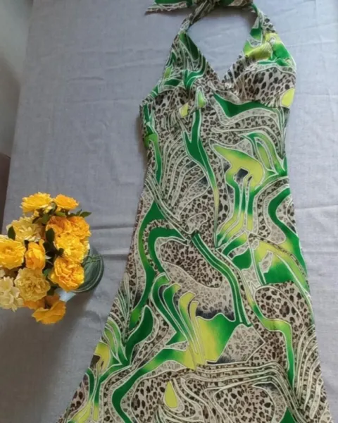 Maxi vestido cuello halter, con cierre invisible al costado, tela ligera con forro, esta hermoso, nuevo sin etiqueta talla 8.