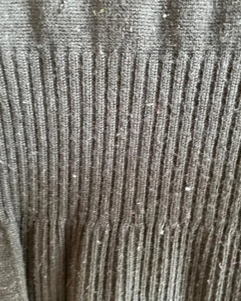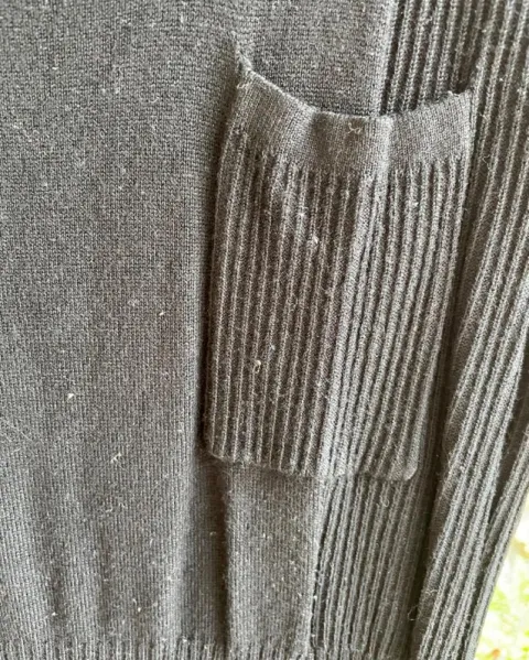 Vestido. Vestido negro de manga larga, tiene un pequeño bolsillo de lado y con botones en los hombros, llega arriba de la rodilla