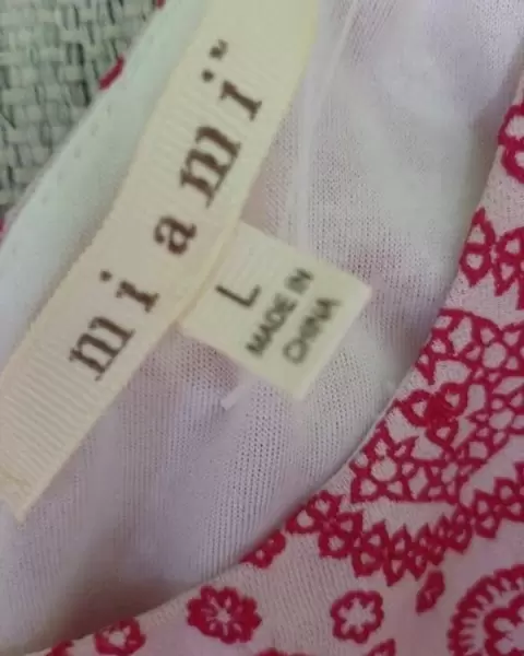 Hermoso vestido fondo Blanco y flores estampadas en rosa mexicano, tipo bordado, excelente calidad, talla L
