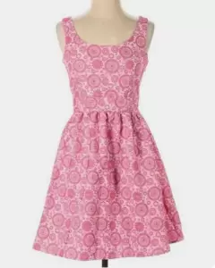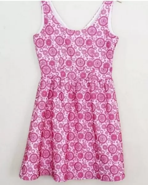 Vestido. Hermoso vestido fondo Blanco y flores estampadas en rosa mexicano, tipo bordado, excelente calidad, talla L
