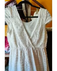 Vestido. Vestido para fiesta, escotado de atrás corte V con fondo transparente, de encaje, sin ningún tipo de detalle.