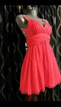 Vestido hermoso color coral con pedreria, precioso y elegante para talla s nuevo.cintura 67cm, , busto medida tomada de frente 41cm, largo 89cmAmericano