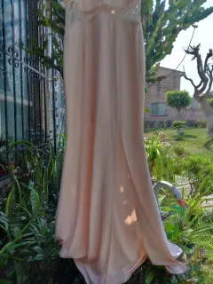 Vestido. Hermoso vestido con transparencia en la cintura color rosa claro T-GDE unico