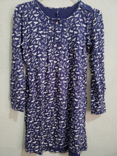 Vestido Azul Marino con estampado beige de aves y ramas T 12/14 algodón 100%