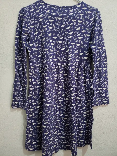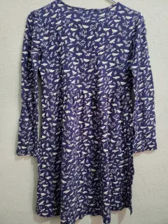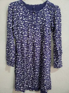 Vestido. Vestido Azul Marino con estampado beige de aves y ramas T 12/14 algodón 100%