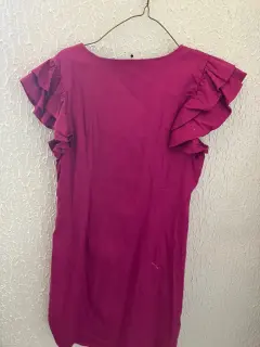 Vestido. Lindo vestido en cuello V , trae escarola en mangas y cuello , corte recto