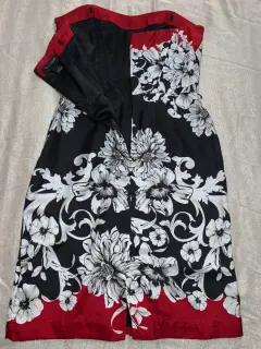 Vestido. Vestido en satén, estraple, con falda de tubo abertura en la parte trasera, estampadoCon cinta adherente para que no se mueva de la espalda y ojitos para ponerle tirantes