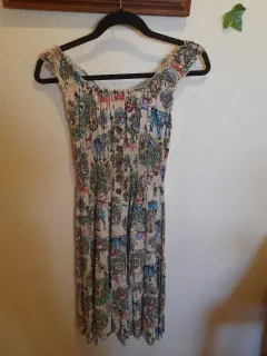 Vestido. Vestido largo con flores y figuras de elefantes multicolor delgadito muy bonito
