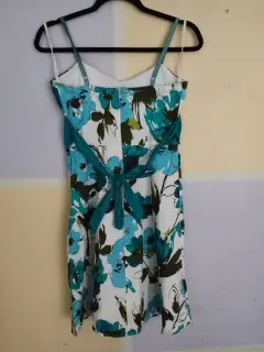 Vestido de tirantes talla G, blanco y verde, cinturon verde, arriba de la rodilla, en excelentes condiciones.