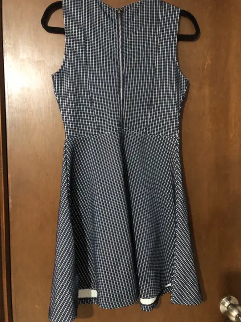 Vestido. Color azul , estampado cuadros Talla chicoSin mangas Cuello redondo Corto, arriba de las rodillas